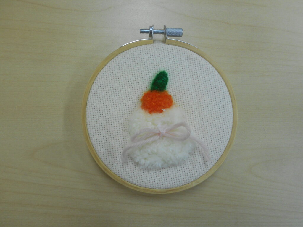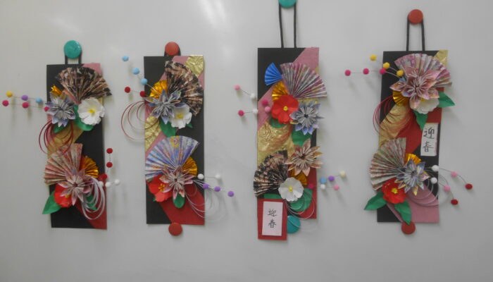 正月飾りは、折り紙や厚紙等を使った壁掛けの飾りと、パンチニードルの2種類でした。